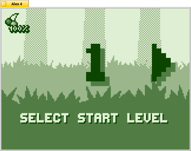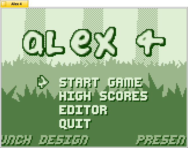 Alex4 kommt mit einer Standardauflösung von 640x480 Pixeln daher. Im Spielmenü kann über die Tasten 1-4 die Fenstergröße verändert werden (3 = Standardauflösung).