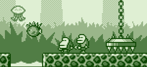 Es gibt verschiedene Gegner und Fallen, die Dir während des Spielens das Leben schwer machen. Da gibt es Quallen und Dornige Fische die in die Luft springen, Bewaffnete oder unbewaffnete Affen die umherlaufen, mit Spitzen versehene, herabfallende Gegenstände,…